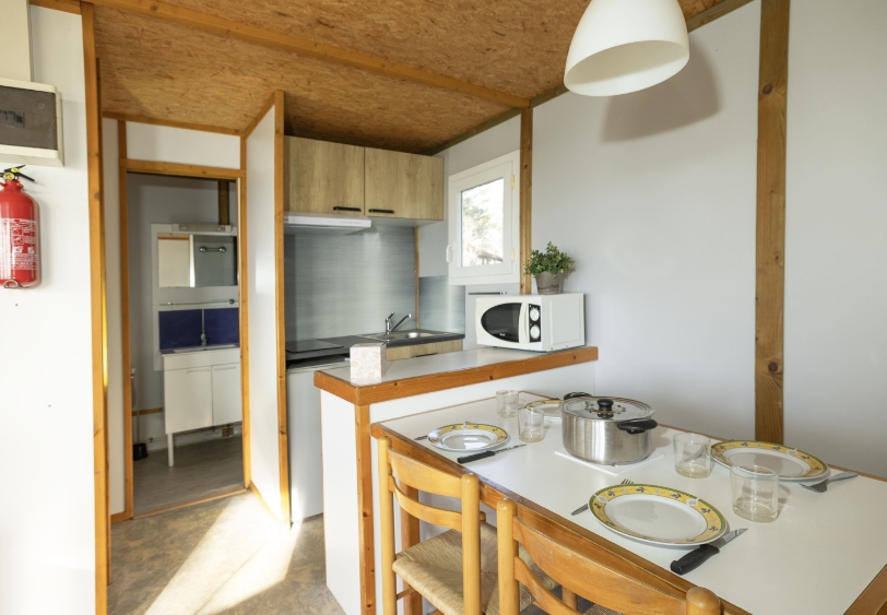 - Cuisine équipée (vaisselle, réfrigérateur, micro-ondes, plaque de cuisson et cafetière à filtre)