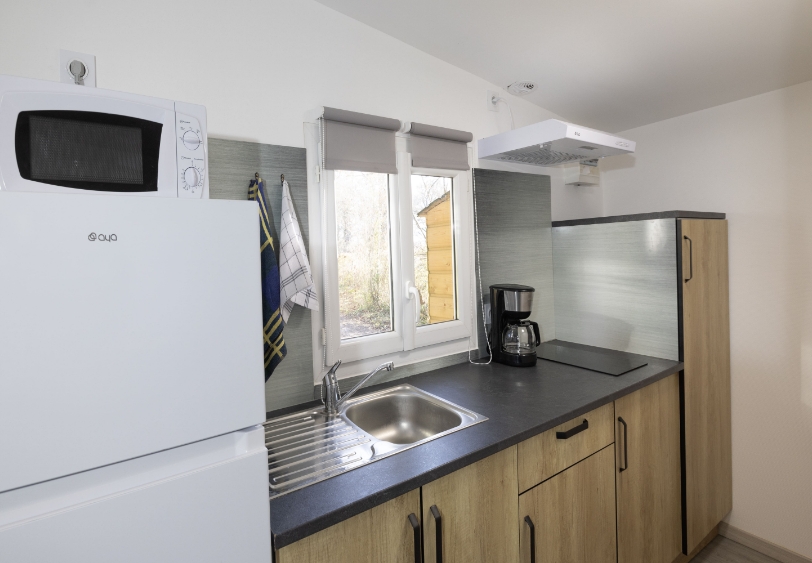 Pensé pour accueillir jusqu’à 4 personnes, ce cottage bois offre des volumes agréables et une vraie continuité avec la nature grâce à sa large terrasse couverte. Vous posez les valises, vous respirez… et les vacances commencent.